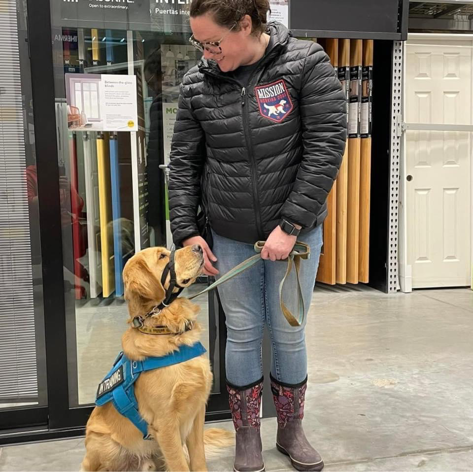 Christy Gardner, our founder, is the driving force behind Mission Working Dogs. She started the organization because of her experience with her first service dog, Moxie. After an injury that resulted in traumatic brain and spinal cord injuries, Christy was given a long list of things she’d never be able to do independently again. But with Moxie, Christy could reclaim her life in ways doctors never expected. With Moxie and now current service dog Doug by her side, Christy can comfortably and safely go grocery shopping and attend community events with confidence.