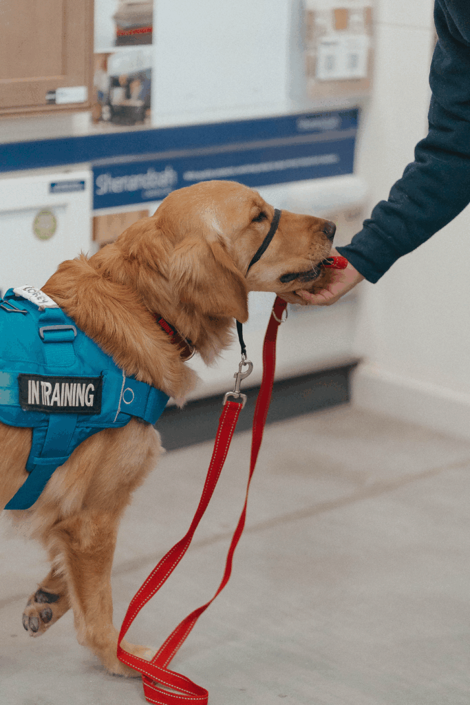 For example, someone with PTSD might struggle to go to the grocery store. A service dog can help by creating physical space between them and others, easing anxiety and preventing triggers, and making outings more manageable. Our dogs also assist individuals with severe mobility impairments by performing everyday tasks like opening doors, retrieving dropped items, or helping with balance. We train two types of service dogs: those for PTSD and those for mobility assistance. Knowing that we’re giving people a new outlook on life and a companion to go through it with is incredibly fulfilling.